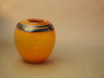 2011Mondgeblazen bolle vaas in oranje met silberbraune band