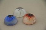 2010Gegoten glasobjecten met koper insluitingen in blank, blauw en rood (groep van 3 stukken)